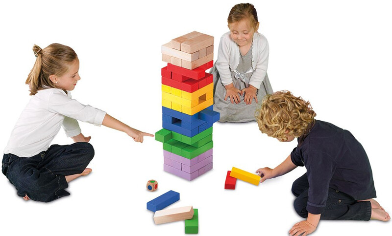 El clásico juego, pero ahora en versión gigante! Tendrás que ir quitando las piezas según el color que te indique el dado, pero Cuidado! Si se te cae la torre, pierdes. Contiene 54 piezas.