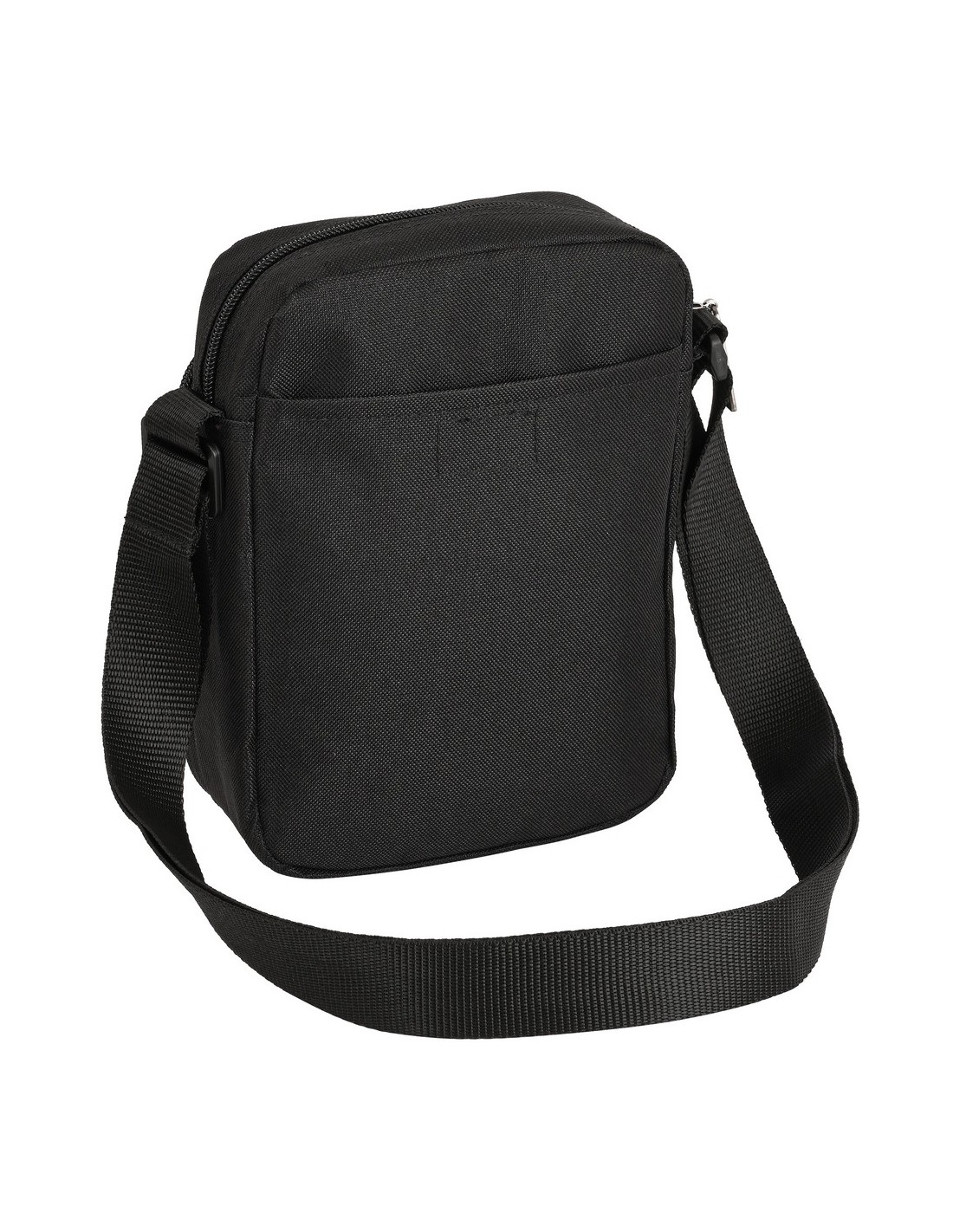 Compartimento principal con cremallera. Bolsillo frontal con cremallera. Bandolera ajustable. Compartimento trasero con cierre de velcro.