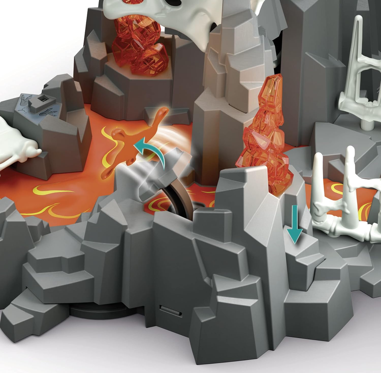Resuelve tareas difíciles con el Guardián de la Fuente de Lava. Además del peligro de la lava ardiente, Ian primero debe evitar las numerosas trampas. Si el cráneo del dinosaurio se inclina hacia atrás, se dispara una llama. La fuente de lava se puede personalizar con la lava de silicona.