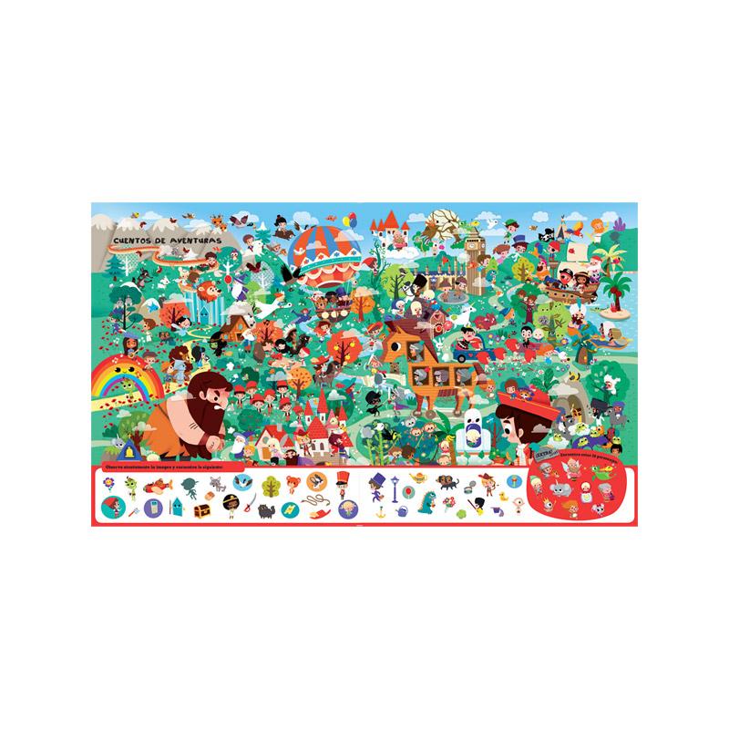 Explora el mundo de los seres fantásticos, el de las fábulas, el fondo del mar, con todos sus misterios, el mundo de los mitos, el de los juguetes, los monstruos, los superhéroes, e incluso busca que te busca por una impresionante doble página sobre el futuro.