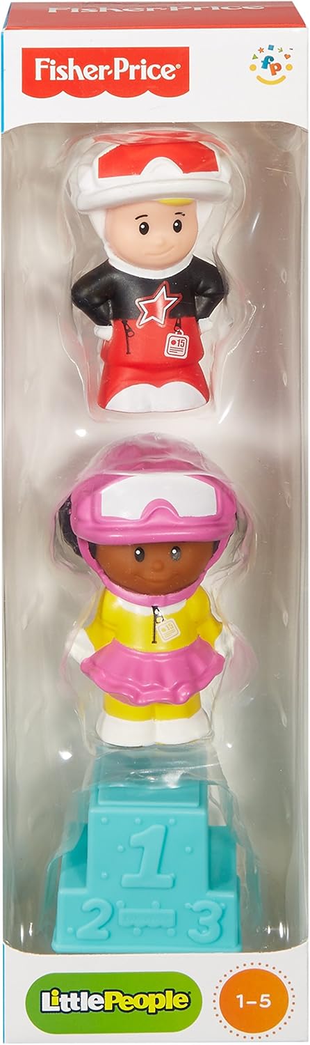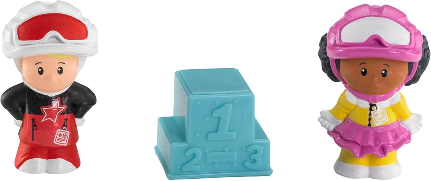 Figura de esquiador de niño, figura de patinadora de niña y plataforma de premios.