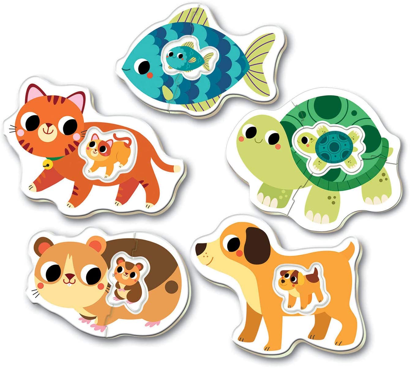5 puzzles de 2 a 4 piezas para construir auténticas figuras y jugar con ellas. Piezas más grandes, más gruesas y más fáciles de manipular.