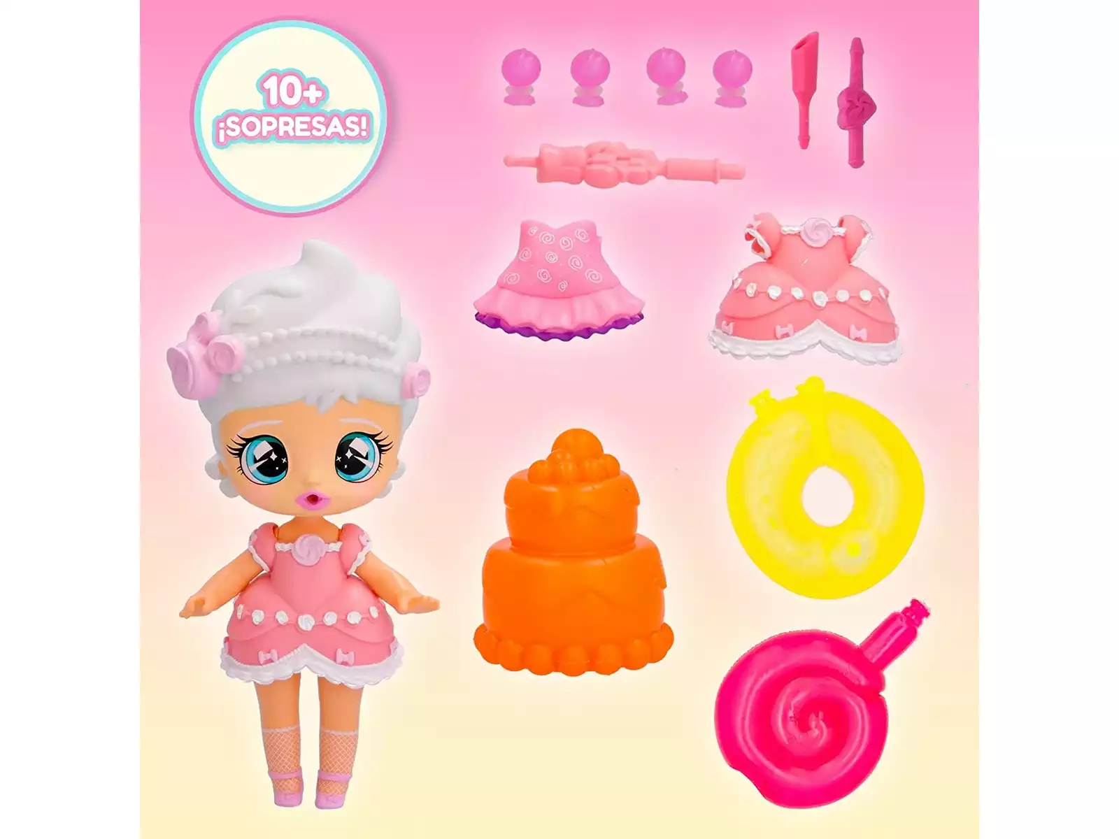 esta adorable muñeca que viene acompañada de grandes sorpresas, una apasionada de las tartas y los globos. Juntos podréis crear, jugar y celebrar la fiesta más inolvidable del año.